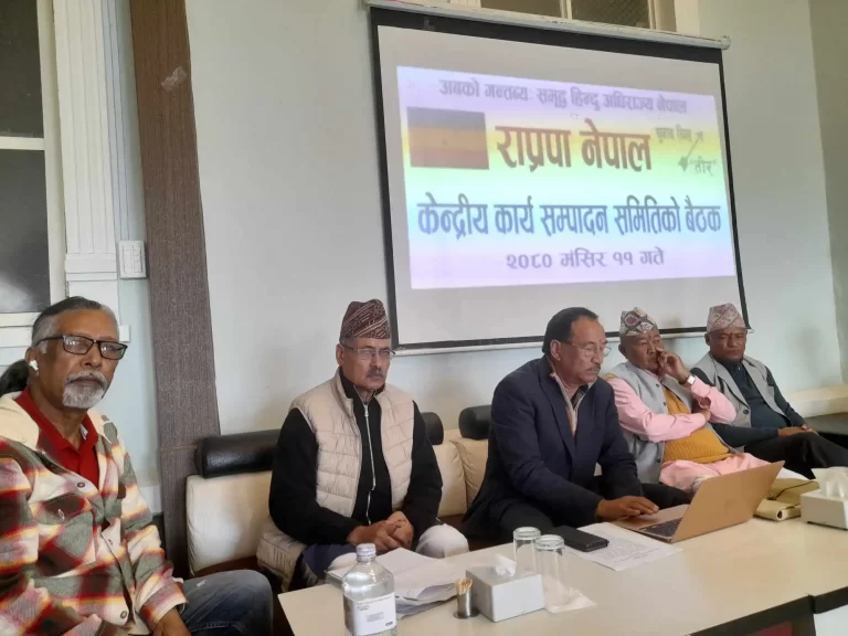 बैठकले सङ्घीय गणतन्त्रको नाउँमा कायम भ्रष्ट व्यवस्थाको अन्त्य चाहने, संवैधानिक राजसंस्था र हिन्दु राष्ट्र स्थापना गर्न चाहने, सङ्घीयता खारेज गर्न चाहने, सुशासन र समृद्धि चाहने सबै एकताबद्ध हुनुपर्छ भन्ने समयको माग र जनताको चाहना रहेको बताउँदै वृहत् राष्ट्रिय मोर्चा निर्माण गर्न सम्पूर्ण राष्ट्रवादी, देशभक्त र प्रजातन्त्रवादी दल र समूहलाई आह्वान गरेको हो ।