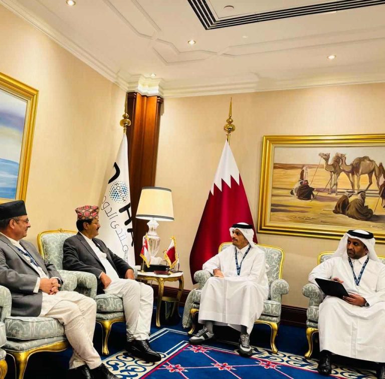 काठमाडौं । परराष्ट्रमन्त्री एनपी साउद र कतारका प्रधानमन्त्री शेख मोहम्मद बिन अब्दुल रहमान अल–थानीसँग शिष्टाचार भेटवार्ता भएको छ।