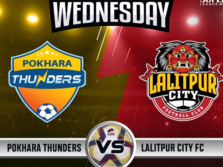 काठमाडौं । नेपाल सुपर लिग एनएसएलको फाइनल प्रवेशका लागि आज ललितपुर सिटी एफसी र पोखरा थन्डर्स भिड्ने भएका छन् । प्रतियोगिताको दोस्रो क्वालिफायरमा ललितपुर र पोखरा भिड्न लागेका हुन् । विजेता टिमले फाइनलमा धनगढी एफसीसँग उपाधिका लागि प्रतिस्पर्धा गर्नेछ ।
