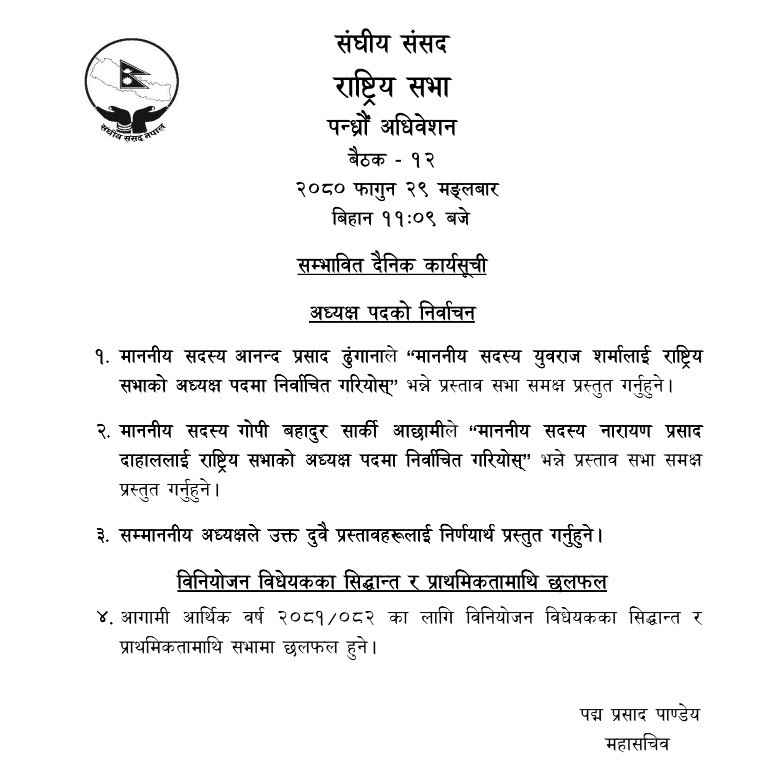 राष्ट्रियसभा अध्यक्ष निर्वाचनः यस्तो छ कार्यसूची