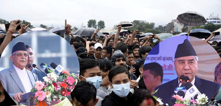 प्रधानमन्त्री र कांग्रेस सभापतिविरुद्ध युवाहरूको नाराबाजी, ओली संयम बन्दा जङ्गिए देउवा