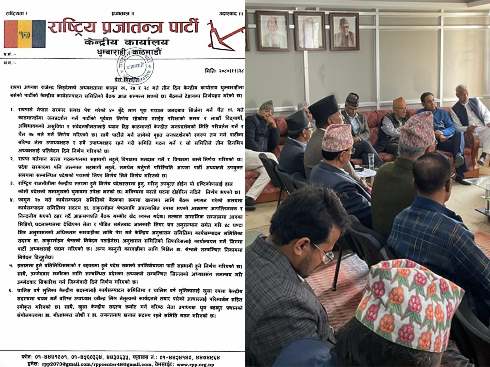 प्रधानमन्त्रीलाई विश्वासको मत नदिने राप्रपाको निर्णय