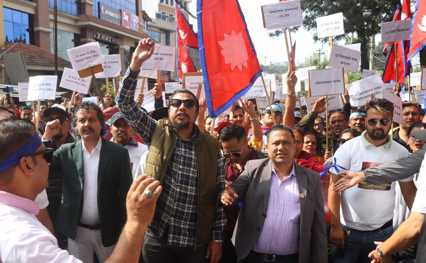 रास्वपाले सभापति रवि लामिछाने पक्राउविरुद्ध पोखरा र काठमाडौंमा प्रदर्शन गर्दै