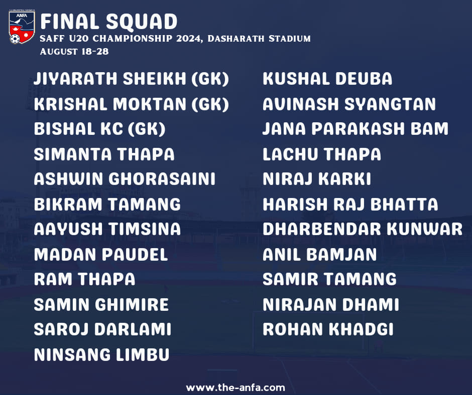 साफ यु-२० च्याम्पियनसिप खेल्ने नेपाली फुटबल टोलीको घोषणा