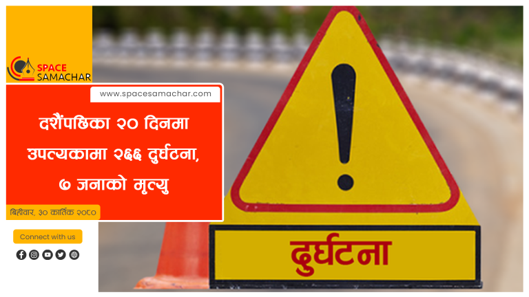 काठमाडौं । गत कात्तिक ११ देखि ३० गतेसम्मको अवधिमा काठमाडौं उपत्यकामा २६६ वटा दुर्घटना भएको छ । यी दुर्घटनाहरुमा ७ जनाको मृत्यु भएको छ भने ३३० जना घाइते भएका छन् ।