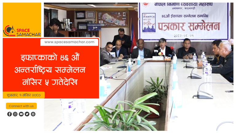 एशियाली तथा पश्चिम प्रशान्त क्षेत्रका १८ मुलुकका निर्माण व्यवसायीहरुको अन्तर्राष्ट्रिय छाता संस्था इफाप्का (इन्टरनेशनल फेडेरेशन अफ एशियन एण्ड वेस्ट्रन प्यासिफिक कन्ट्याक्टर) को ४६ औं अन्तर्राष्ट्रिय सम्मेलन मंसिर ५ गतेदेखि हुने भएको हो । शुक्रवार नेपाल निर्माण व्यवसायी महासंघले पत्रकार सम्मेलन गरी यसबारेमा जानकारी गराएको हो । महासंघले सम्मेलन मंसिर ५ गतेदेखि ९ गतेसम्म काठमाडौंमा हुने जनाएको छ । पत्रकार सम्मेलनमा बोल्दै महासचिव रोशन दाहालले ४६ औं अन्तर्राष्ट्रिय सम्मेलन पार्टनरिङ इन सस्टेनेबल इन्फास्ट्रक्चर भन्ने रहेको बताउनु भयो । उहाँले सम्मेलनको औपचारिक उद्घाटन मंसिर ६ गते राष्ट्रपति रामचन्द्र पौडेलबाट हुने बताउनु भयो । सम्मेलनमा स्वदेशका १ सय ५८ र विदेशका २ सय ४२ गरी ४ सय प्रतिनिधि सहभागी हुने बताउनु भयो । उहाँले पर्यवेक्षकको रुपमा पनि केही प्रतिनिधि सम्मेलनमा सहभागी हुने महासंघले जनाएको छ ।