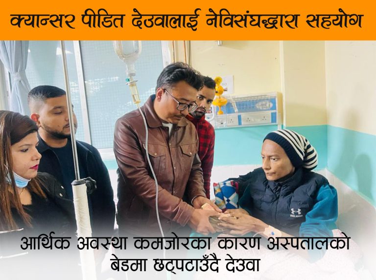 देउवा त्रिवि शिक्षण अस्पताल महाराजगन्ज स्थित सुरेस वाग्ले क्यान्सर अस्पतालमा उपचारार्थ रहेका छन्। उनलाई यस अघि १२ वटा क्यान्सरको प्रतिरोधात्मक किमो चढाईसकिएको छ। देउवाले एउटा किमो चढाउँदा एक लाख भन्दा बढी खर्च हुने गरेको बताए। उनले भने,‘एउटा किमो चढाउँदा कम्तिमा पनि एक लाख दश हजार बढी खर्च हुन्छ। मेरो आर्थिक अवस्थाले भ्याउने अवस्था छैन।म आफ्नो प्राणका लागि सहयोगको याचना गरिरहेको छु। नेविसंघले देउसी भैलो खेलेर संकलन गरेको रकम पाउँदा आफूलाई ठूलो राहतको महसुस गरेको छु। मैले विभिन्न सहयोगी मनहरुबाट यस्तै सहयोगको अपेक्षा समेत गरेको छु उनले भने।’