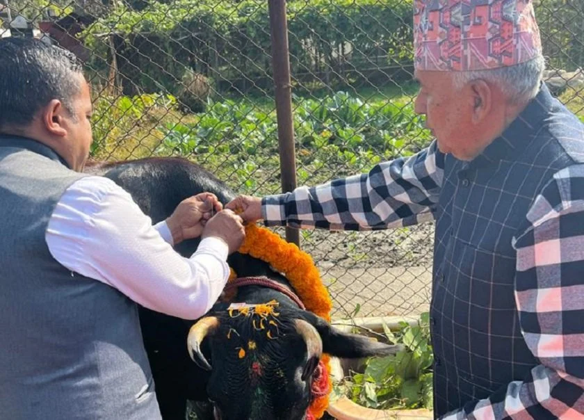 राष्ट्रपति पौडेलले यसरी गरे गाई पूजा